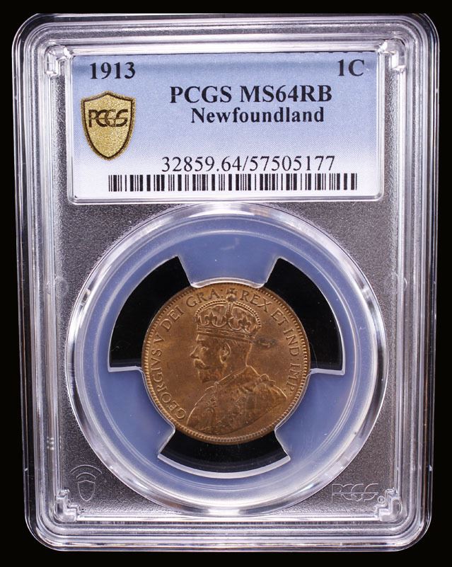 CANADA: NEWFOUNDLAND: George V, 1910-1936, AE cent, 1913, PCGS MS64 RB