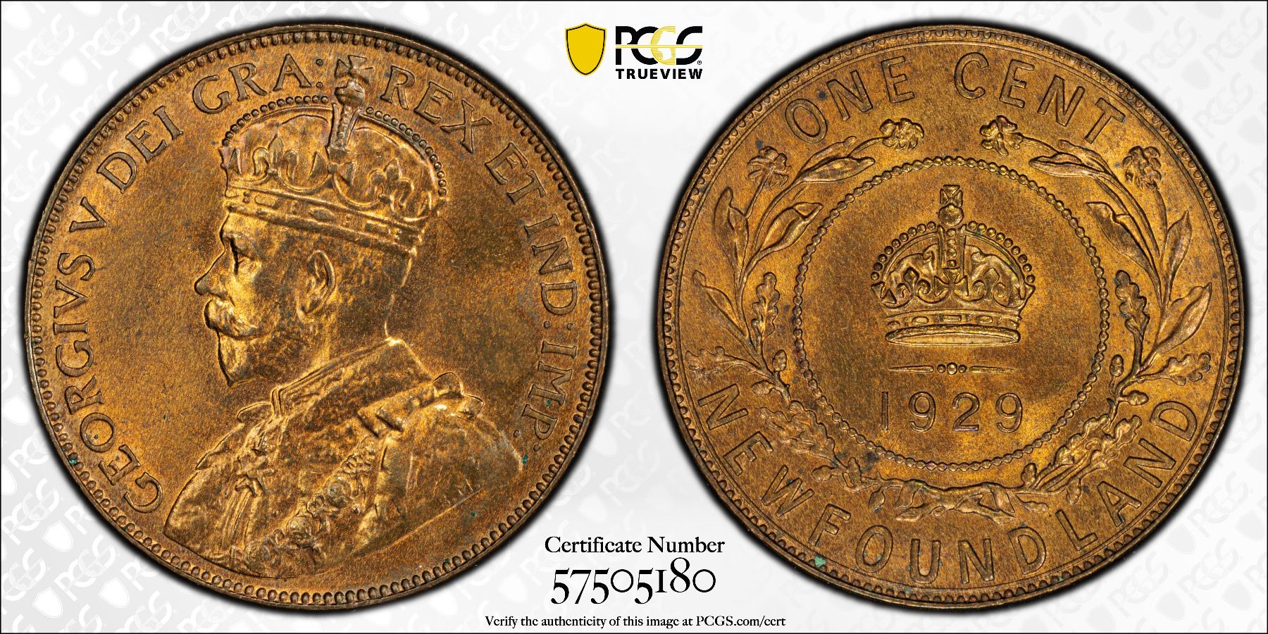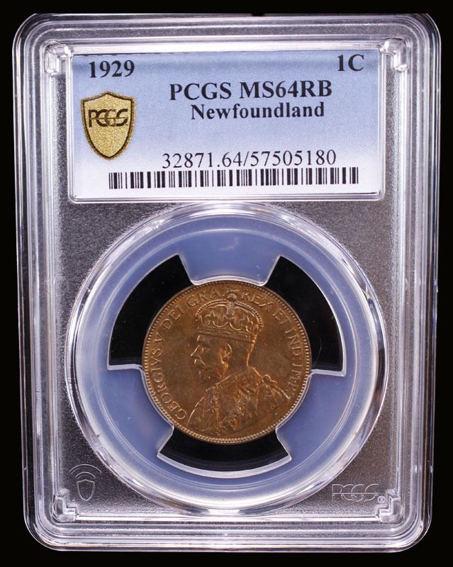CANADA: NEWFOUNDLAND: George V, 1910-1936, AE cent, 1929, PCGS MS64 RB