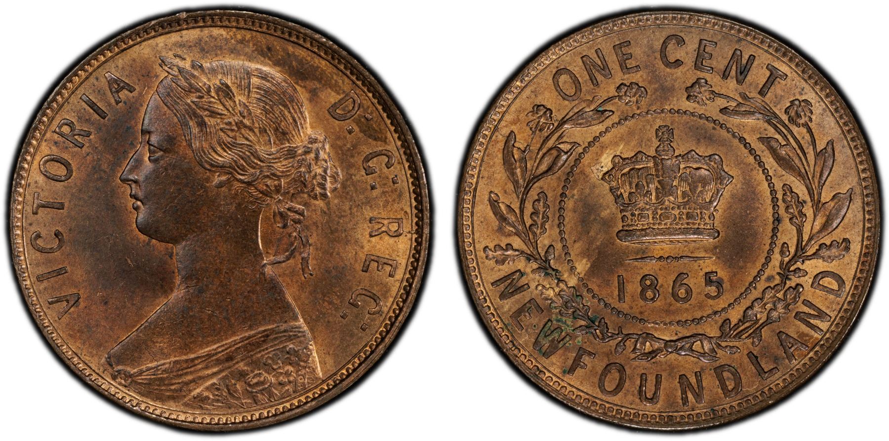 CANADA: NEWFOUNDLAND: Victoria, 1837-1901, AE cent, 1865, PCGS MS64 RB