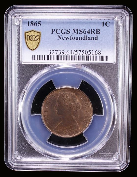 NEWFOUNDLAND: Victoria, 1837-1901, AE cent, 1865, KM-1, beautiful orange luster, PCGS graded MS64 RB.
