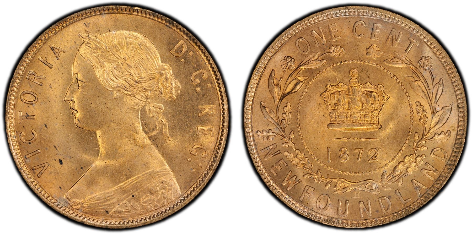 CANADA: NEWFOUNDLAND: Victoria, 1837-1901, AE cent, 1872-H, PCGS MS65 RD
