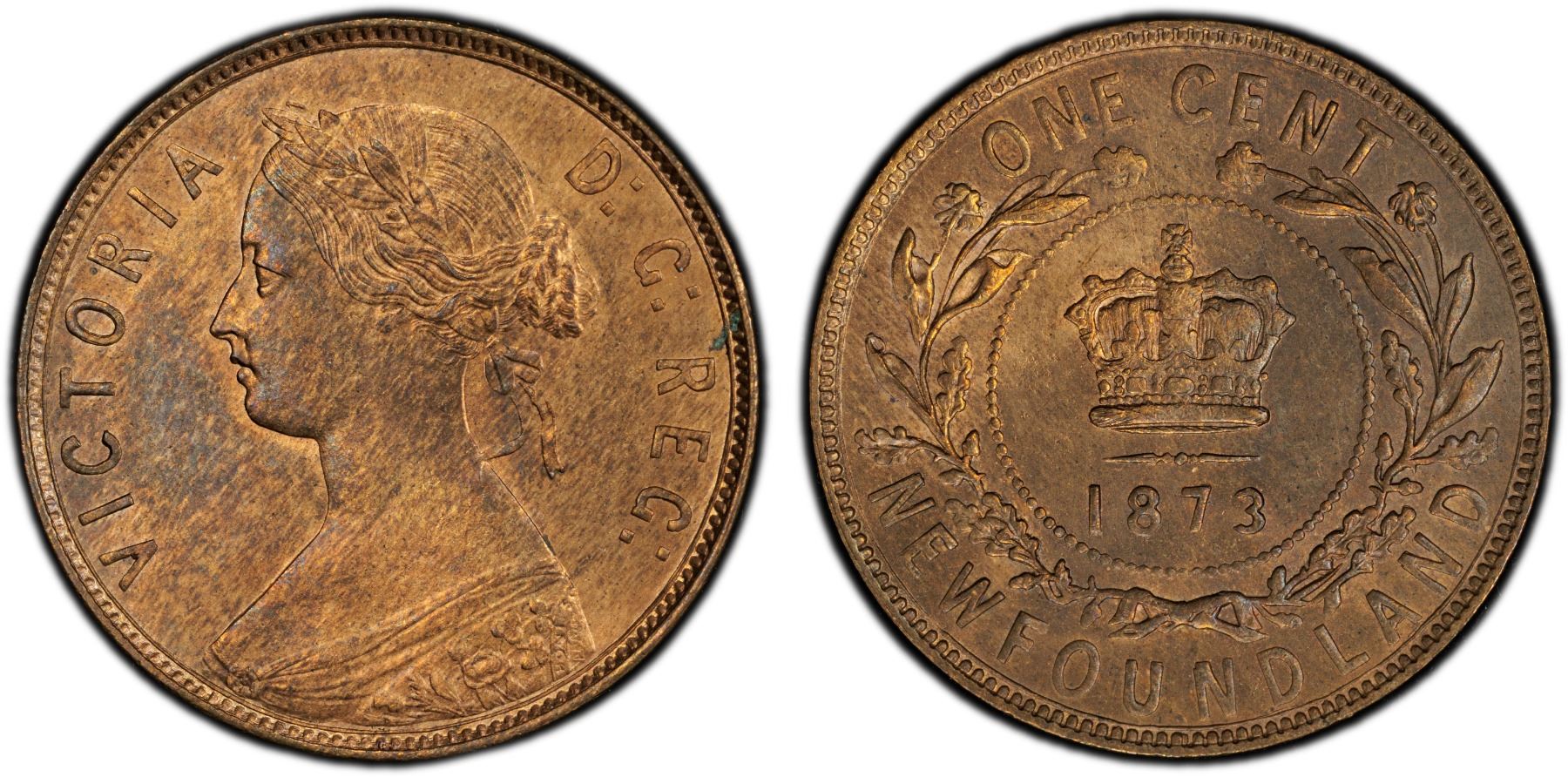 NEWFOUNDLAND: Victoria, 1837-1901, AE cent, 1873, KM-1, beautiful orange patina with ample luster, PCGS graded MS64 RB.