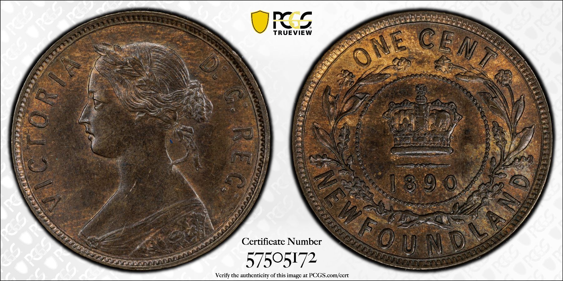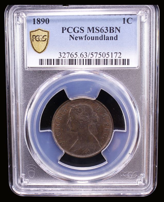 NEWFOUNDLAND: Victoria, 1837-1901, AE cent, 1890, KM-1, PCGS graded MS63 BN.