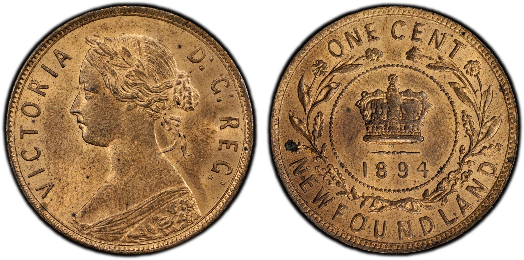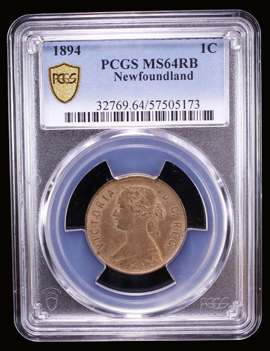 CANADA: NEWFOUNDLAND: Victoria, 1837-1901, AE cent, 1894, PCGS MS64 RB