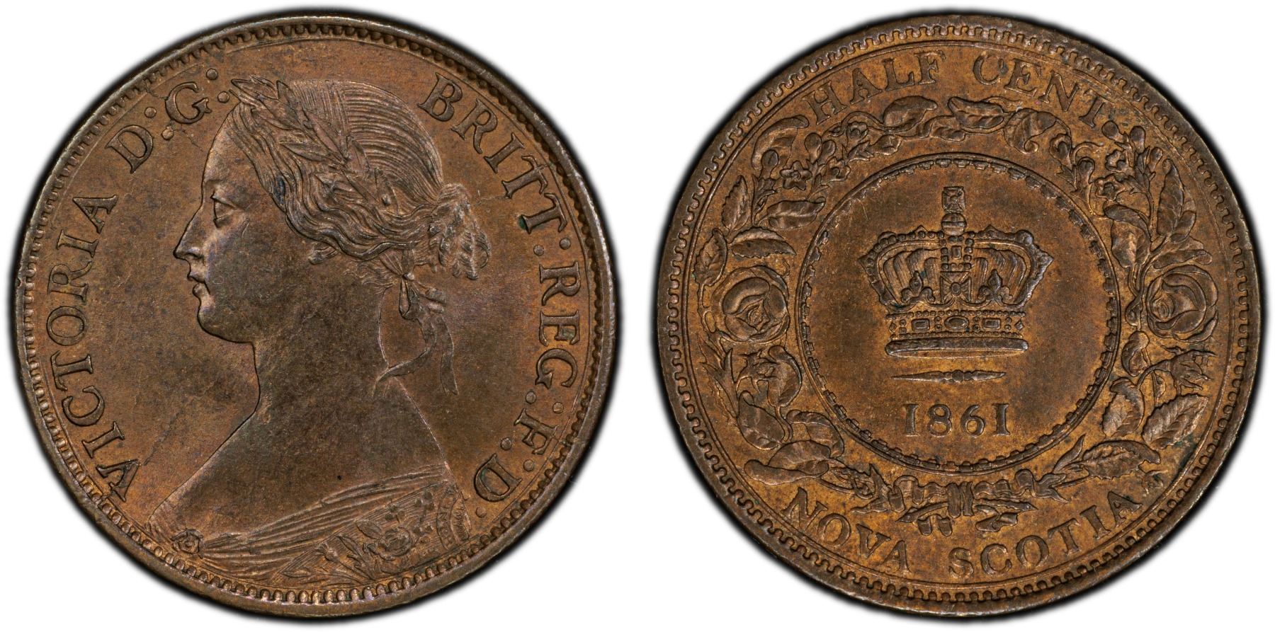 CANADA: NOVA SCOTIA: Victoria, 1837-1867, AE 1/2 cent, 1861, PCGS MS64 BN