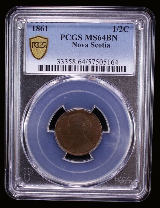 NOVA SCOTIA: Victoria, 1837-1867, AE 1/2 cent, 1861, KM-7, a choice mint state example with alluring cartwheel luster, PCGS graded MS64 BN.