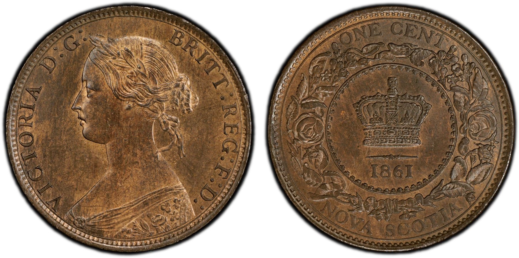 CANADA: NOVA SCOTIA: Victoria, 1837-1867, AE cent, 1861, PCGS MS64 BN