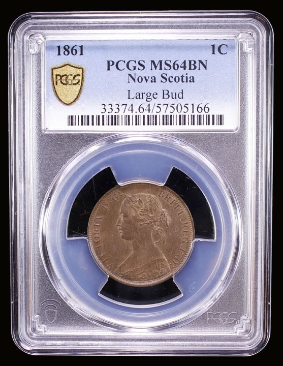 NOVA SCOTIA: Victoria, 1837-1867, AE cent, 1861, KM-8.1, variety with large bud (rosebud), lovely orange luster, PCGS graded MS64 BN.