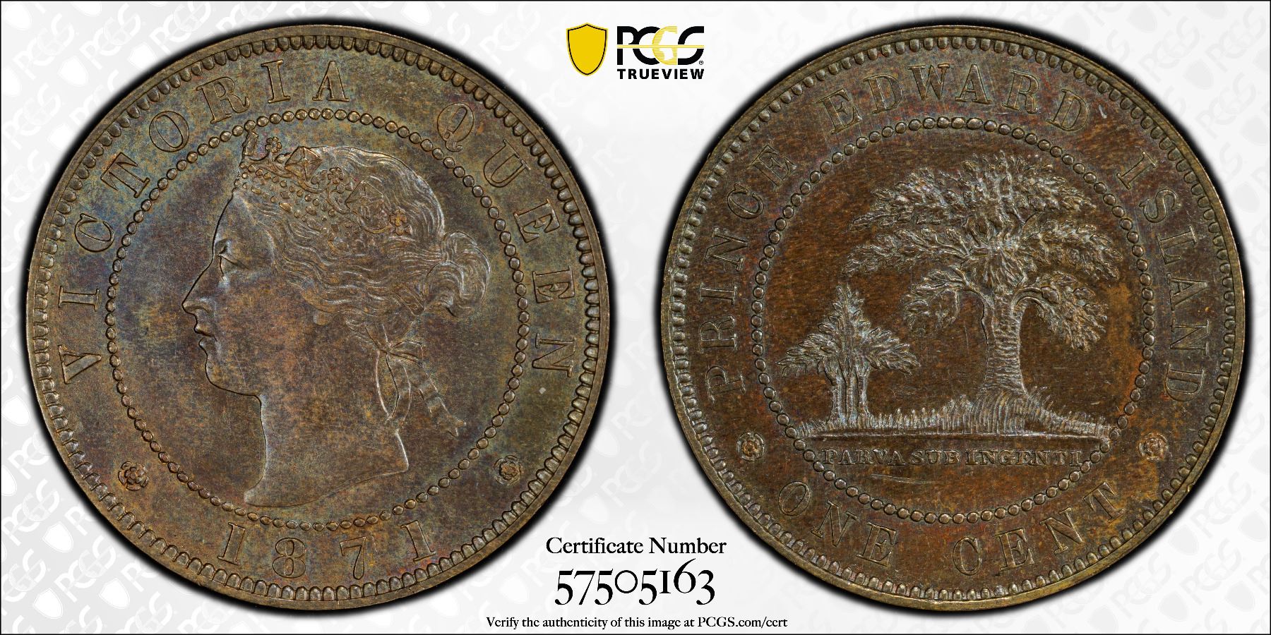 PRINCE EDWARD ISLAND: Victoria, 1837-1873, AE cent, 1871, KM-4, coin alignment, lovely shimmering luster, PCGS graded MS63 BN.