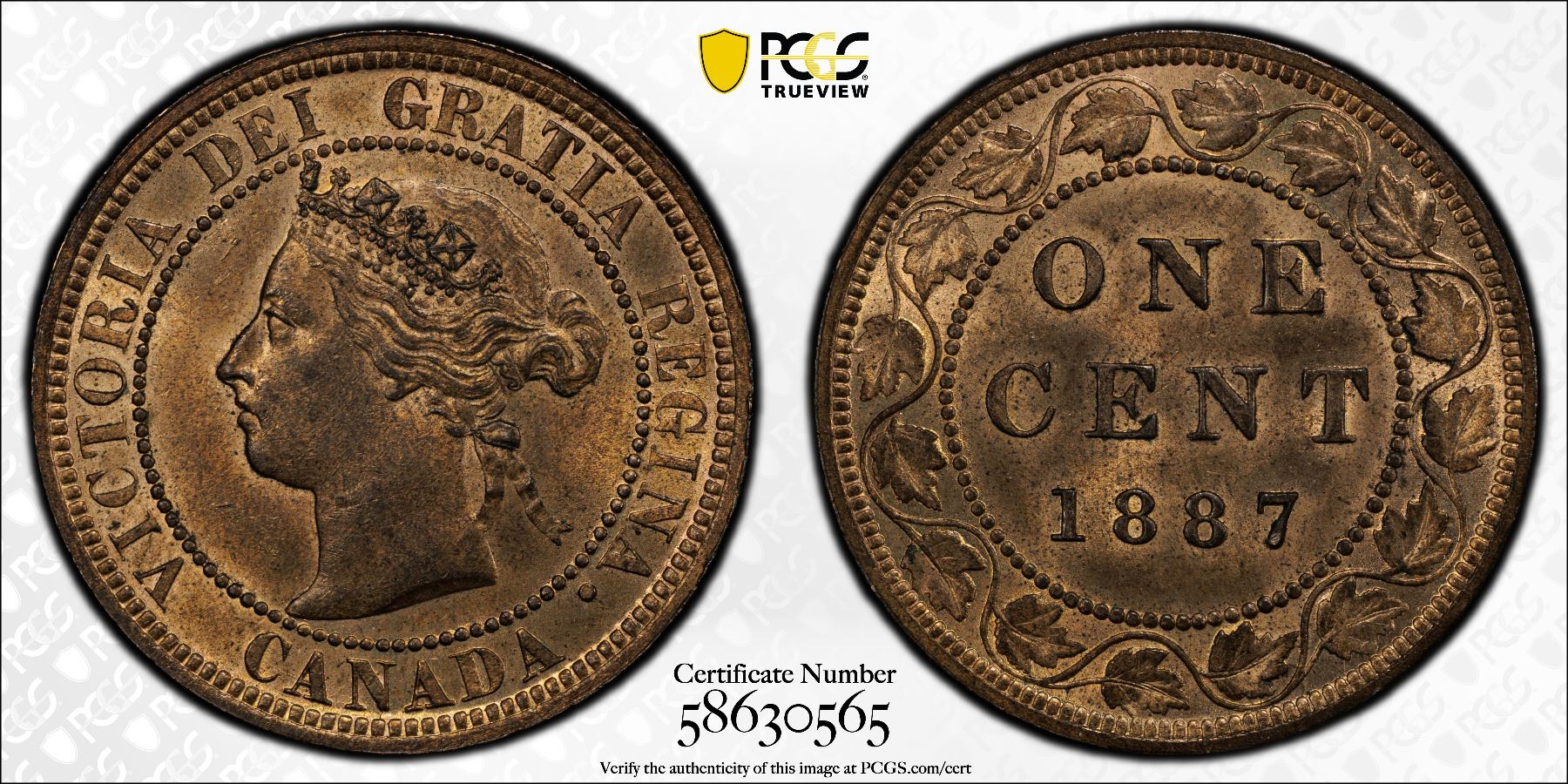 CANADA: Victoria, 1867-1901, AE cent, 1887, PCGS MS64 RB