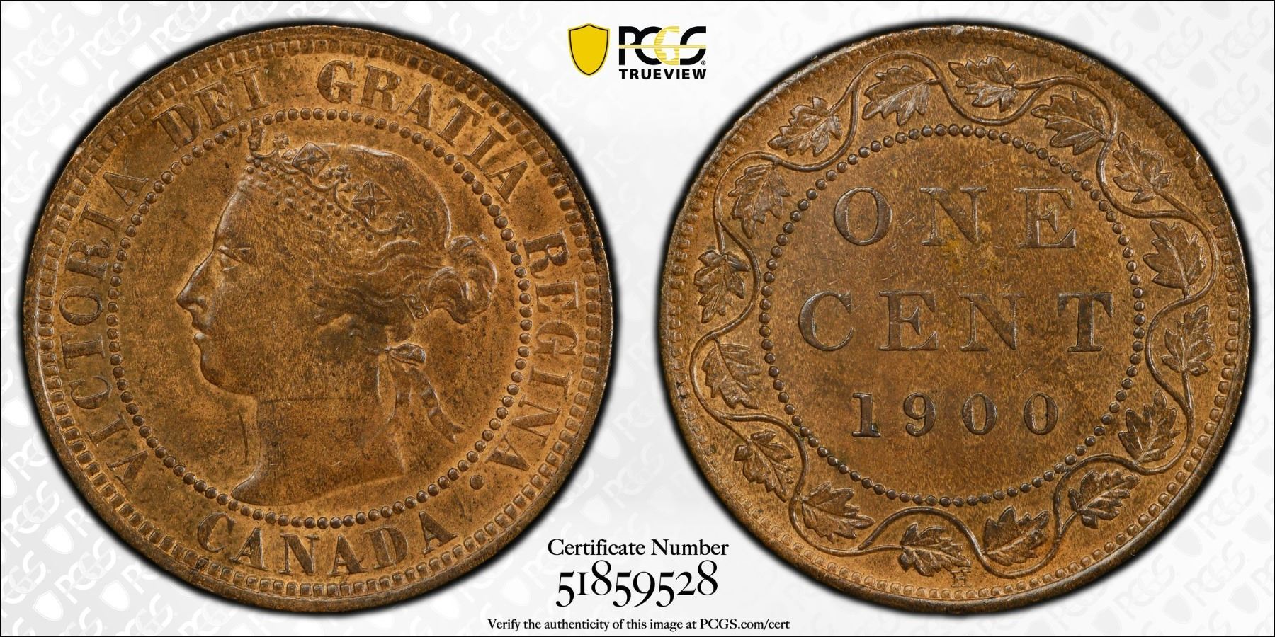 CANADA: Victoria, 1867-1901, AE cent, Heaton, 1900-H, KM-7, PCGS graded AU58, ex Almer H. Orr III Collection.