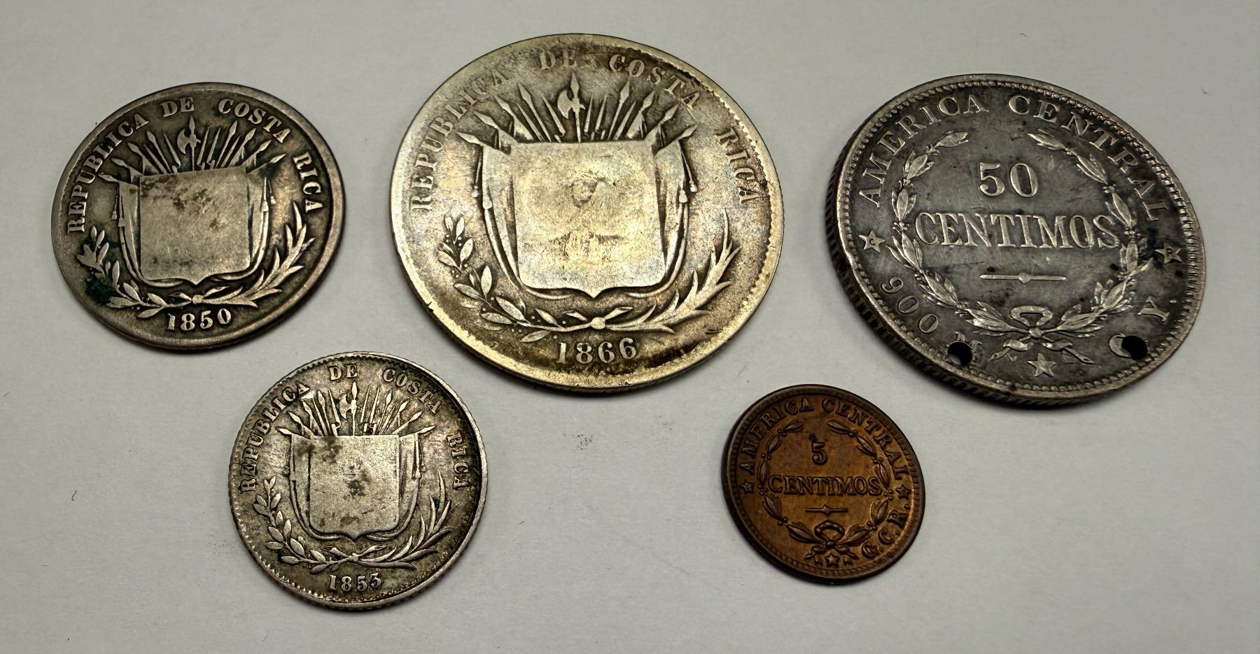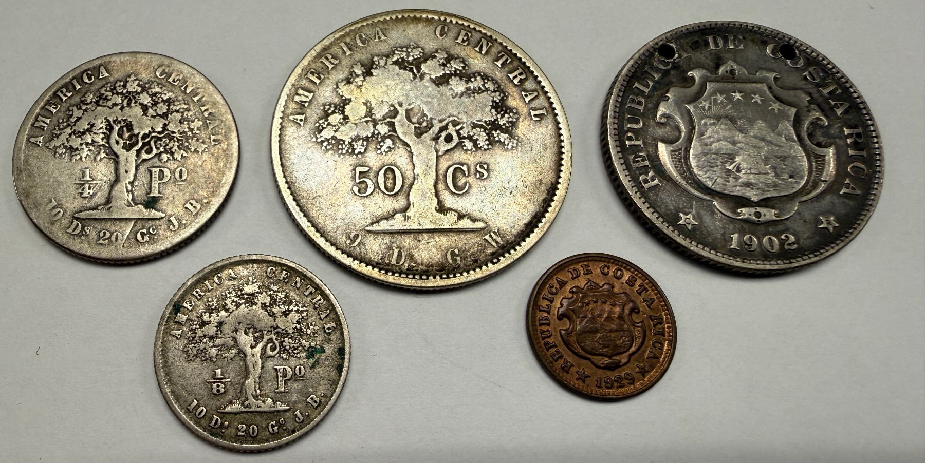 CENTRAL AMERICA: LOT of 29 coins, including Honduras (4) - featuring a 1920 centavo, Haiti (7) - featuring L'an 26 100 centimes, Nicaragua (1), Dominican Republic (3), Costa Rica (5) - featuring an 1866 50 centavos, Guatemala (5) - including an 1867 4 reales, and Panama (4) - featuring a 1904 balboa; retail value $800, lot of 29 pieces.