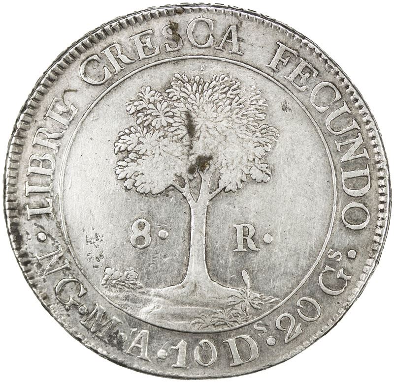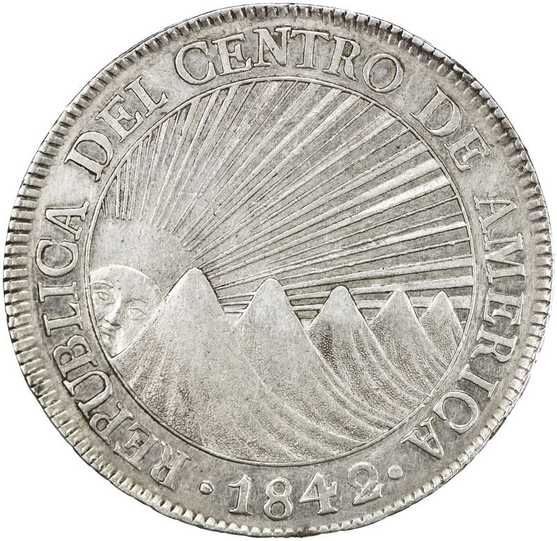 CENTRAL AMERICAN REPUBLIC: AR 8 reales, 1842-NG, KM-4, assayer M/B A, very light reverse oxidation, about EF.