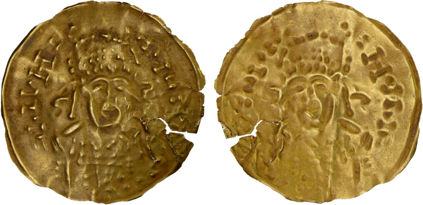 CENTRAL ASIA: Anonymous, ca. 8th-12th century, AV burial bracteate (0.35g), A-3850, cf. Zeno-265529, bust of Byzatine Constantine IV (668-685), holding a spear behind his head, pseudo-Byzantine legend around, strong VF.