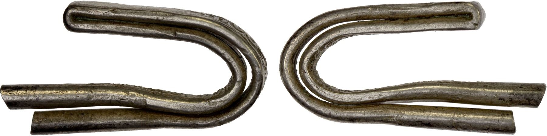 CEYLON: Anonymous, 16th-18th century, AR larin (5.56g), "fish hook" type, originally a blank larin, with stylized pseudo-Arabic added later, stamped on the edge before the second fold; heavy weight, crude VF.