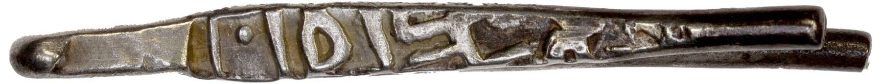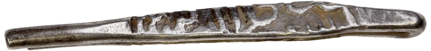 CEYLON: Anonymous, AR larin (4.75g), ca. 16th-18th century, Mitch-2324/25, straight ("hairpin") type, with stylized inscriptions on both sides, from Ceylon or southern India based on style, bold strike, Choice VF.