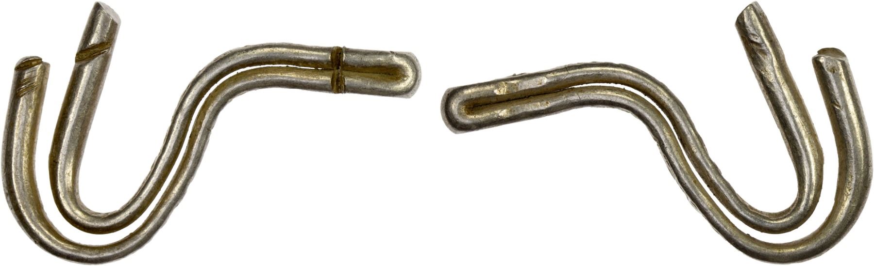 CEYLON: Anonymous, ca. 16th-18th century, AR larin (4.63g), "fish hook" type, originally a blank larin, with stylized pseudo-Arabic added later, stamped on the edge before the second fold, XF.