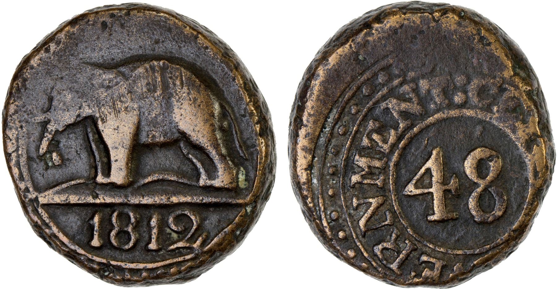 CEYLON: British: George III, 1760-1820, AE 1/48 rixdollar (8.82g), 1812, KM-63, Prid-74, elephant left, struck by Ceylon Government Mint, F-VF.