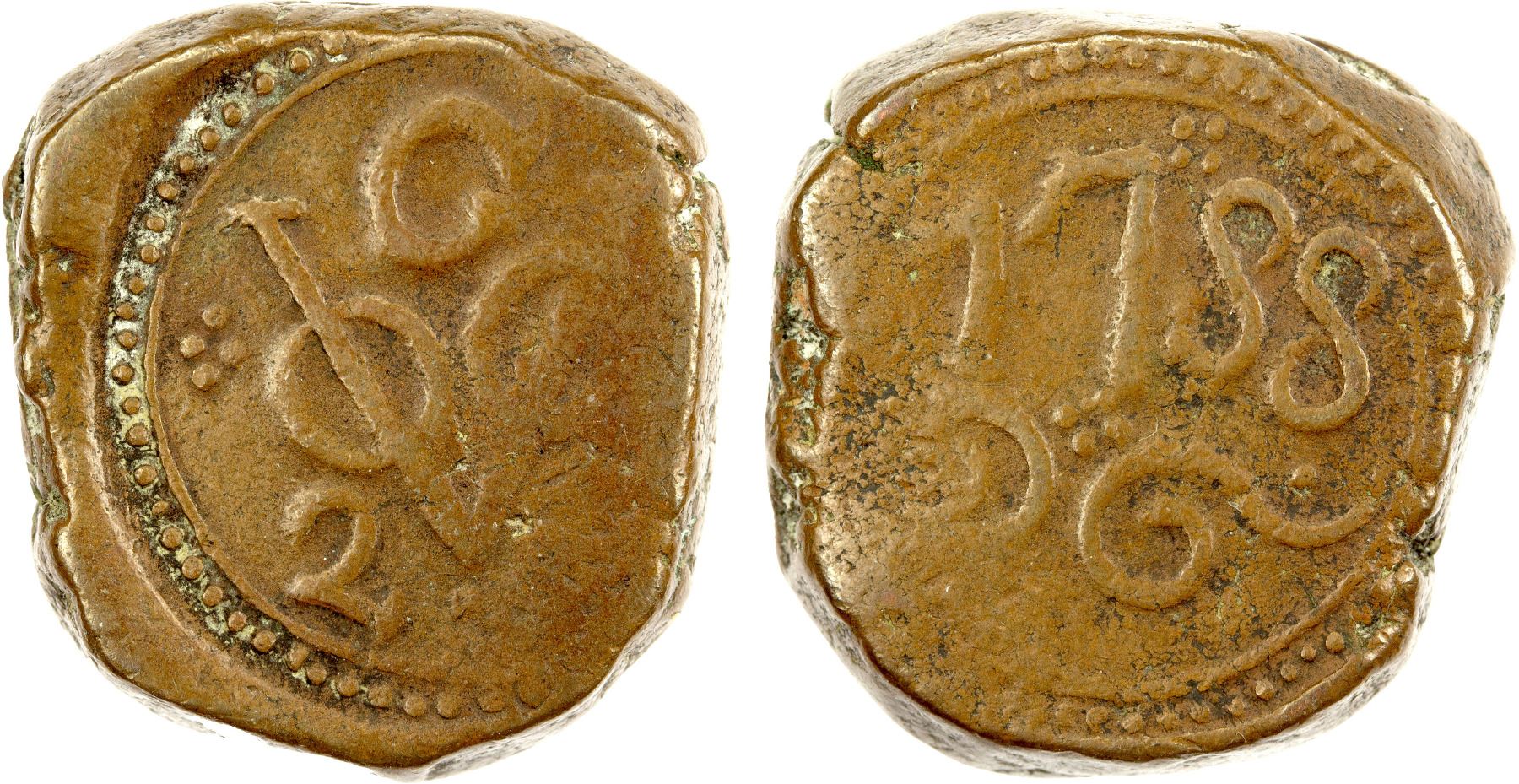 CEYLON (DUTCH): AE 2 stuiver (27.04g), Galle, 1788-G, KM-30, slight weakness, VF, ex Charles W. Lueders III Collection.