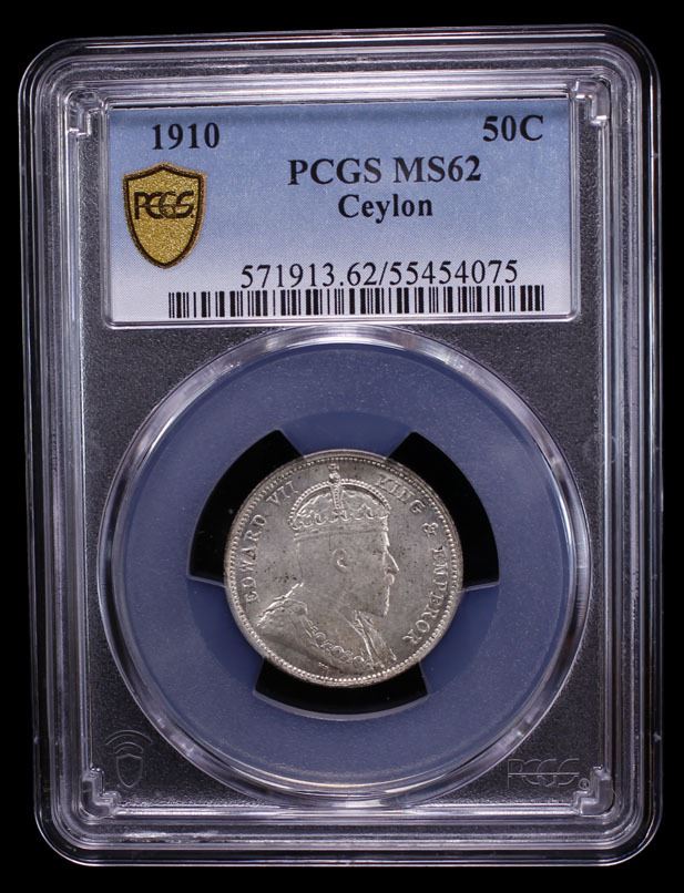 CEYLON: Edward VII, 1901-1910, AR 50 cents, 1910, KM-99, an attractive example, PCGS graded MS62.