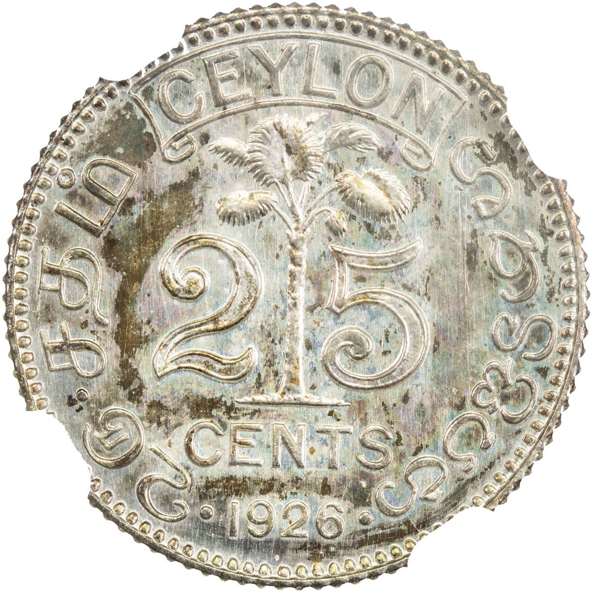 CEYLON: George V, 1910-1936, AR 25 cents, 1926, KM-105a, gorgeous iridescent toning with golden areas in the background of the field, NGC graded Proof 66, RR, ex Paul Stevens Collection.