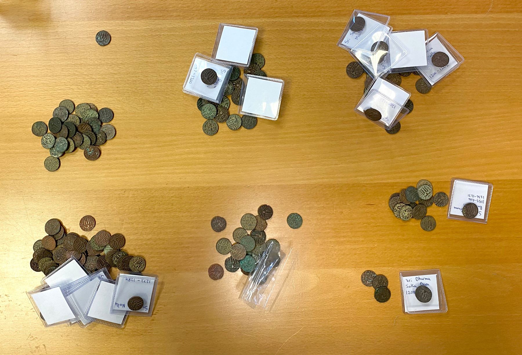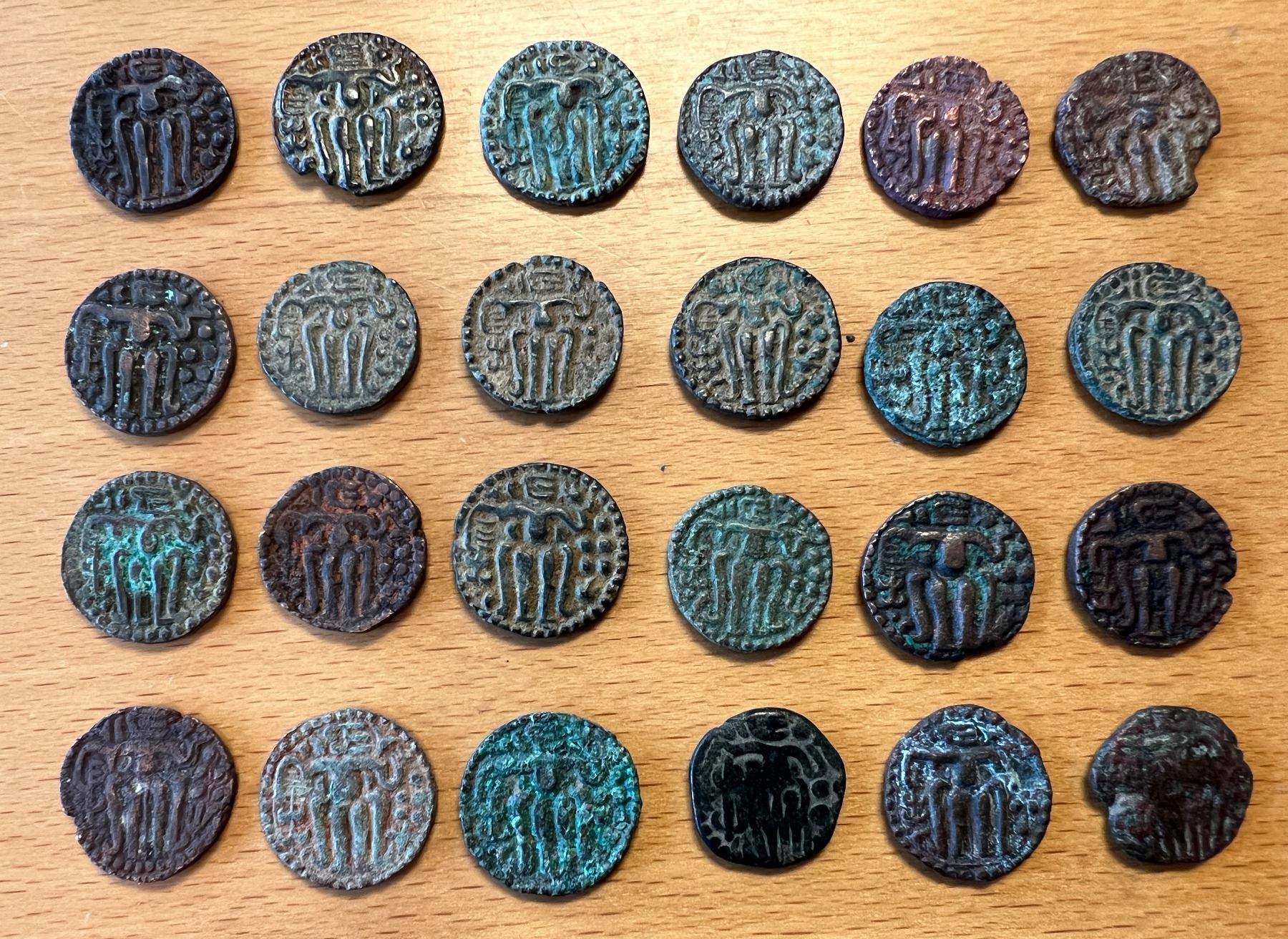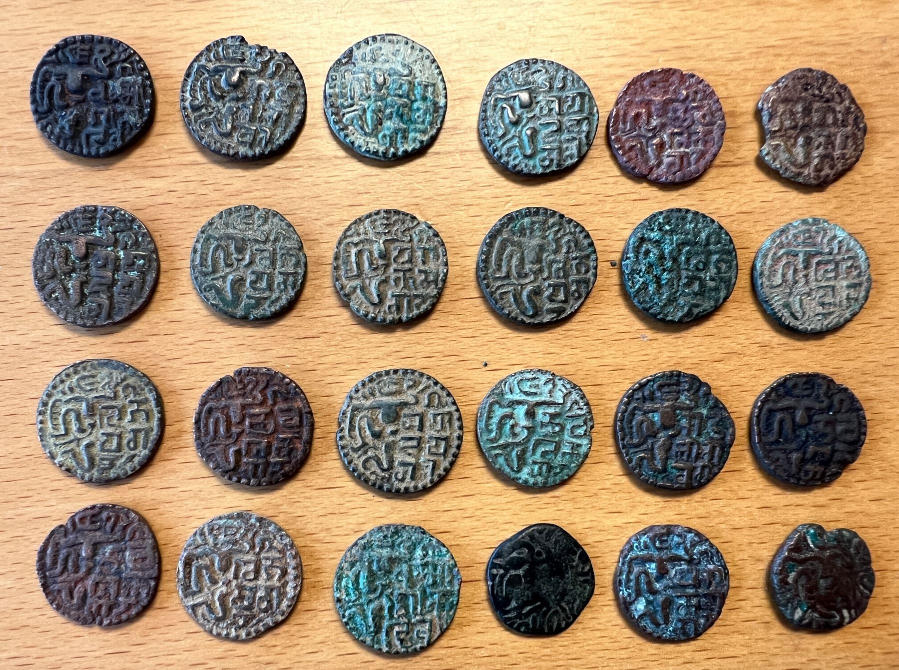 CEYLON (MEDIEVAL): LOT of 182 copper kahavanus, in the names of Vijaya Bahu (27 pcs), Queen Lilavati (24), Sahasa Malla (26), Dharmasoka (4), Bhuvanaika Bahu (63), Parakrama Bahu (14), and unidentified (24); identified by the consignor, all VF or better, with a majority EF; many need some simple cleaning; retail value at least $2500, lot of 182 pieces.