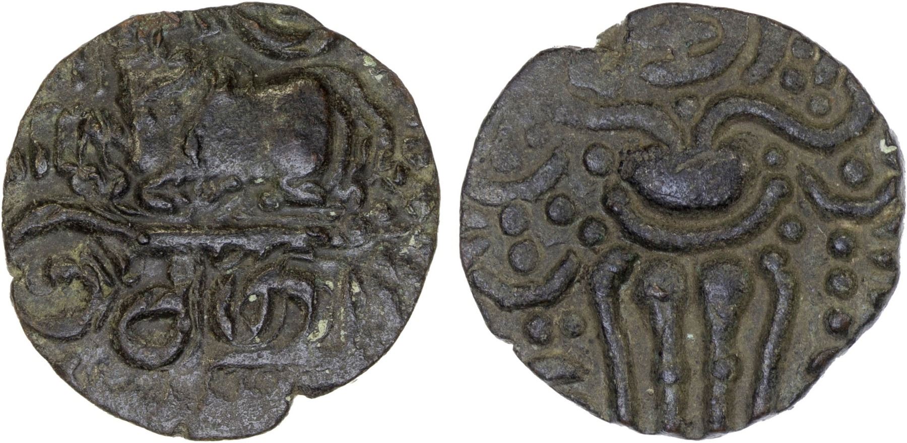 CEYLON: Medieval: Anonymous, ca. 1284-1410, AE unit (3.78g), Mitch-859/861, Arya Chakravarti of Jaffna series: king seated with Tamil setu beneath his arm // standing king, Fine, RR.