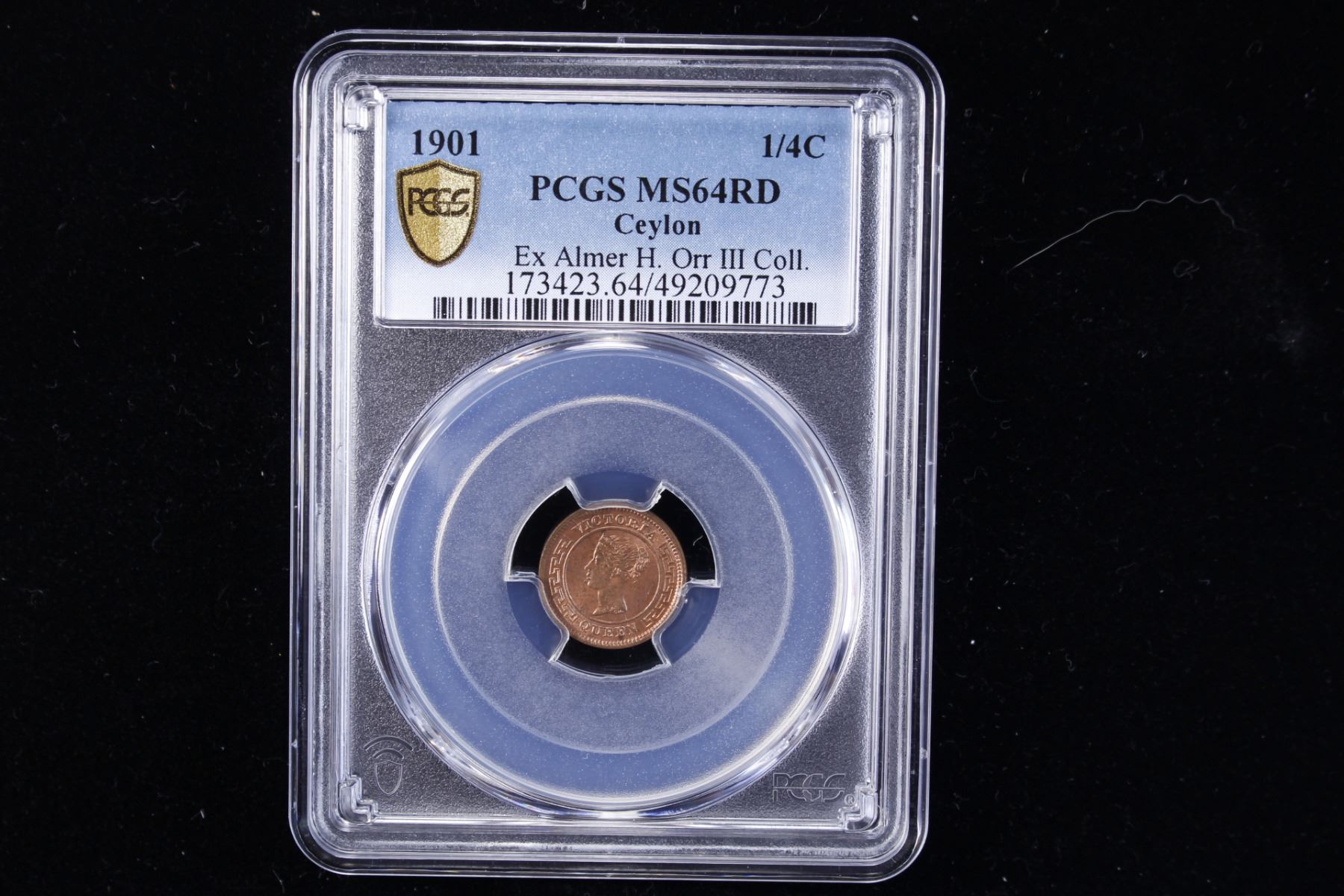 CEYLON: Victoria, 1837-1901, AE 1/4 cent, 1901, KM-90, Y-4, a wonderful red lustrous example! PCGS graded MS64 RD, ex Almer H. Orr III Collection.
