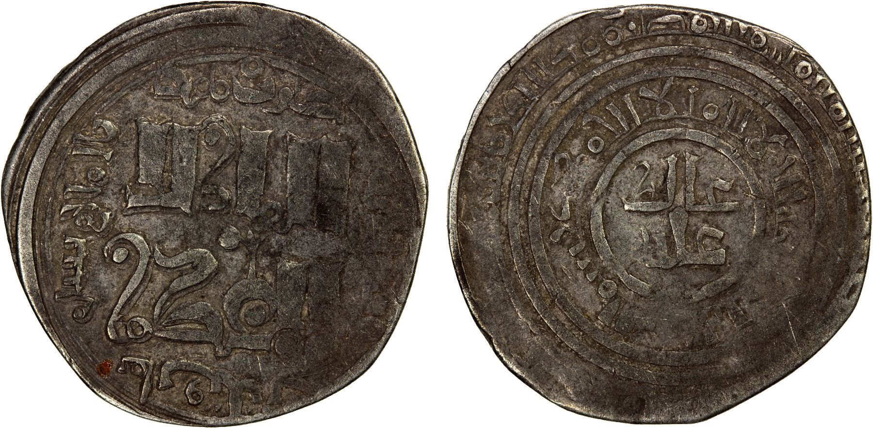 CHAGHATAYID KHANS: temp. Chaghatay, 1227-1241, AR dirham (2.01g), Almaligh, AH638, A-1979, touch of weakness, but clear mint & date, attractive F-VF, RR. One of the very few examples actually struck during the lifetime of Chaghatay, who died in AH639.