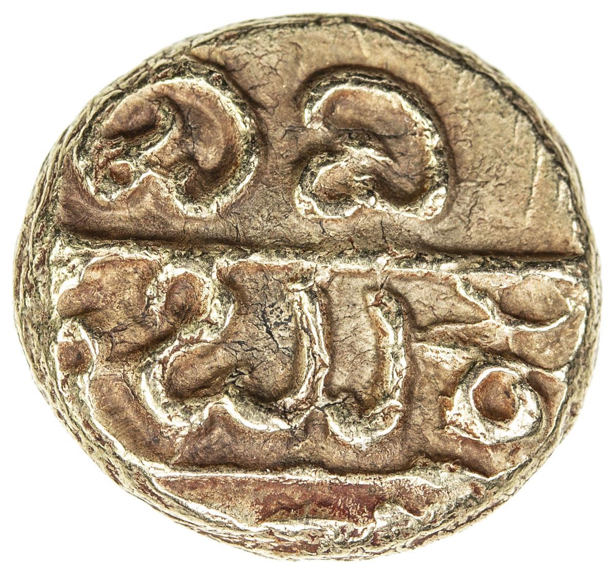 CHALUKYAS: Somesvara, ca. 1181-1189, AV pagoda (3.34g), Mitch-283/85, Garuda running to the right // Kannada legend, bold strike, EF, R.