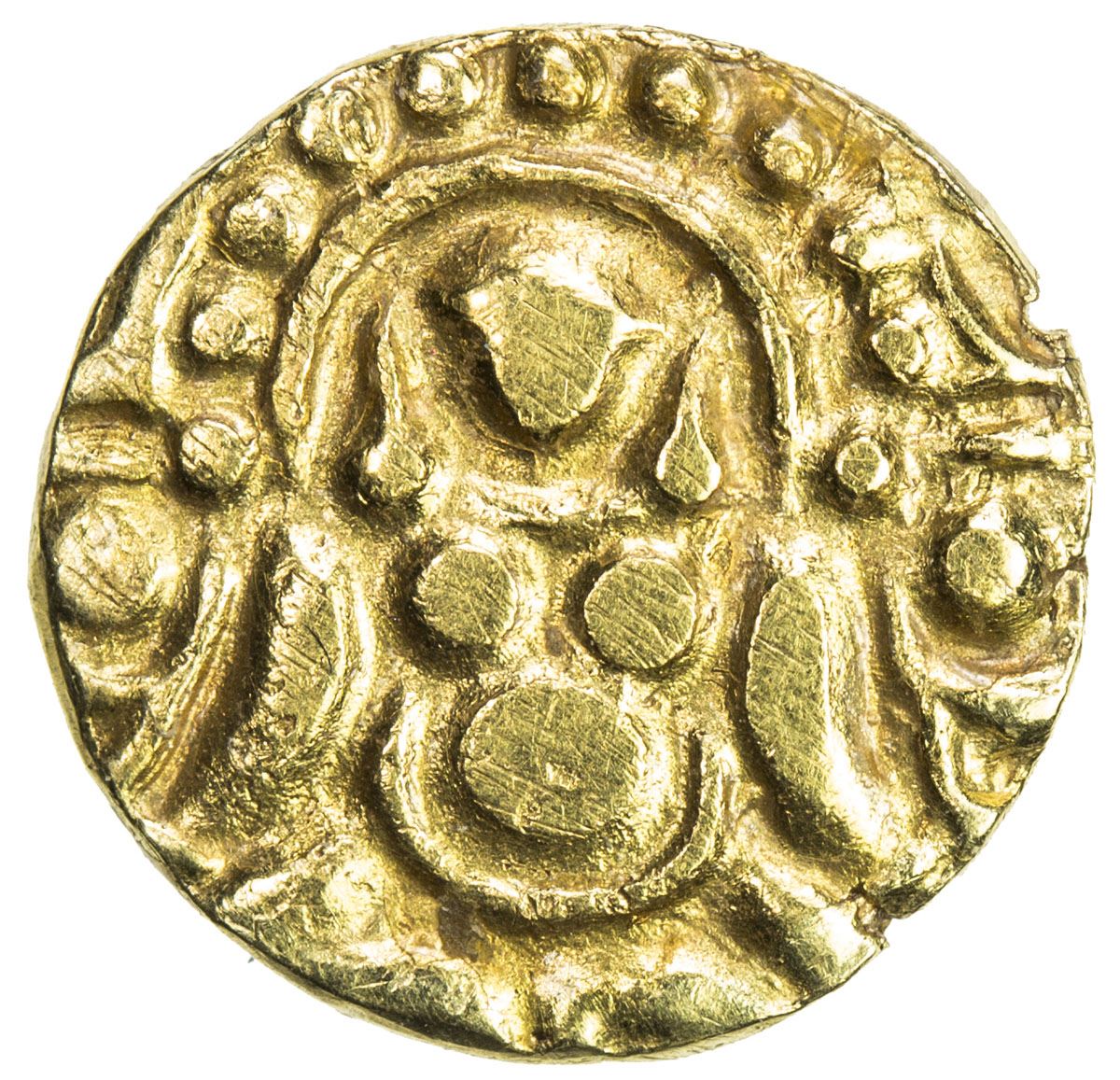 CHANDELLAS OF BUNDELKHAND: Sallakshana, ca. 1100, AV 1 1/8 masha (0.98g), De-137, seated goddess Lakshmi // three-line legend, lightly polished, VF.