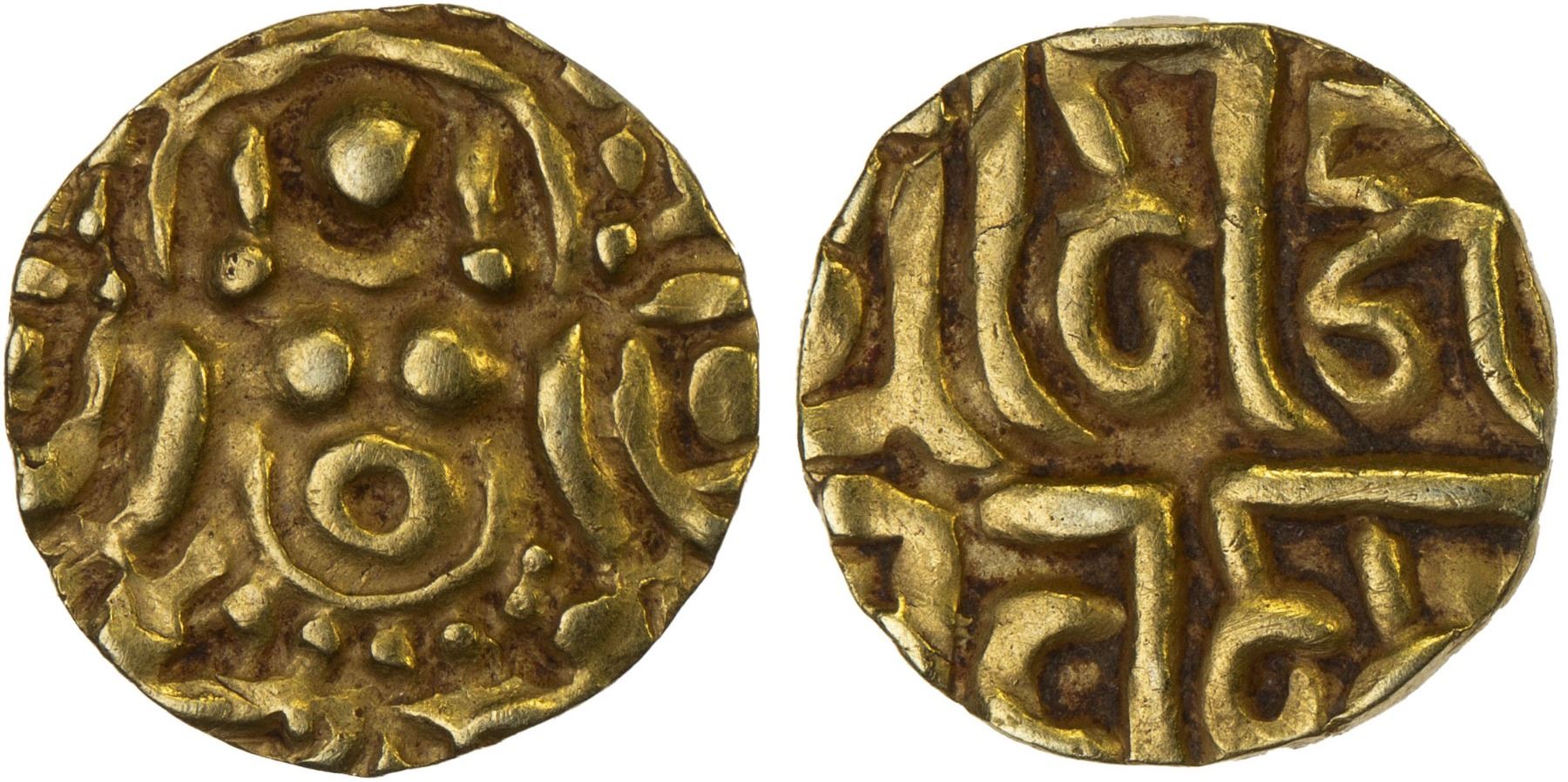 CHANDELLAS OF JEJAKABHUKTI: Madana Varman, ca. 1129-1163, AV 1-1/8 massa (1.03g), De-142, seated Lakshmi facing / Devanagari legend srima madana varmma devah, XF, RR.