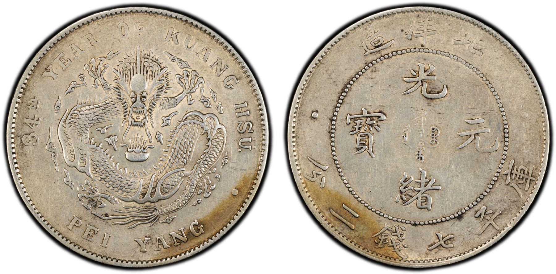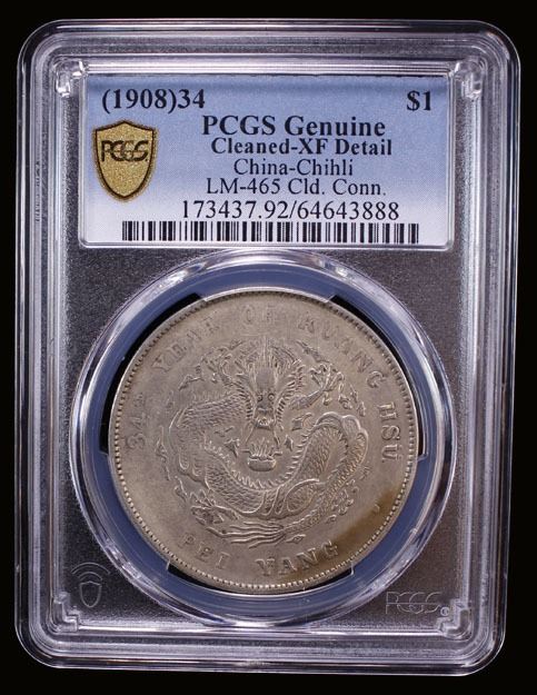 CHIHLI: Kuang Hsu, 1875-1908, AR dollar, Peiyang Arsenal Mint, Tientsin, year 34 (1908), PCGS XF det