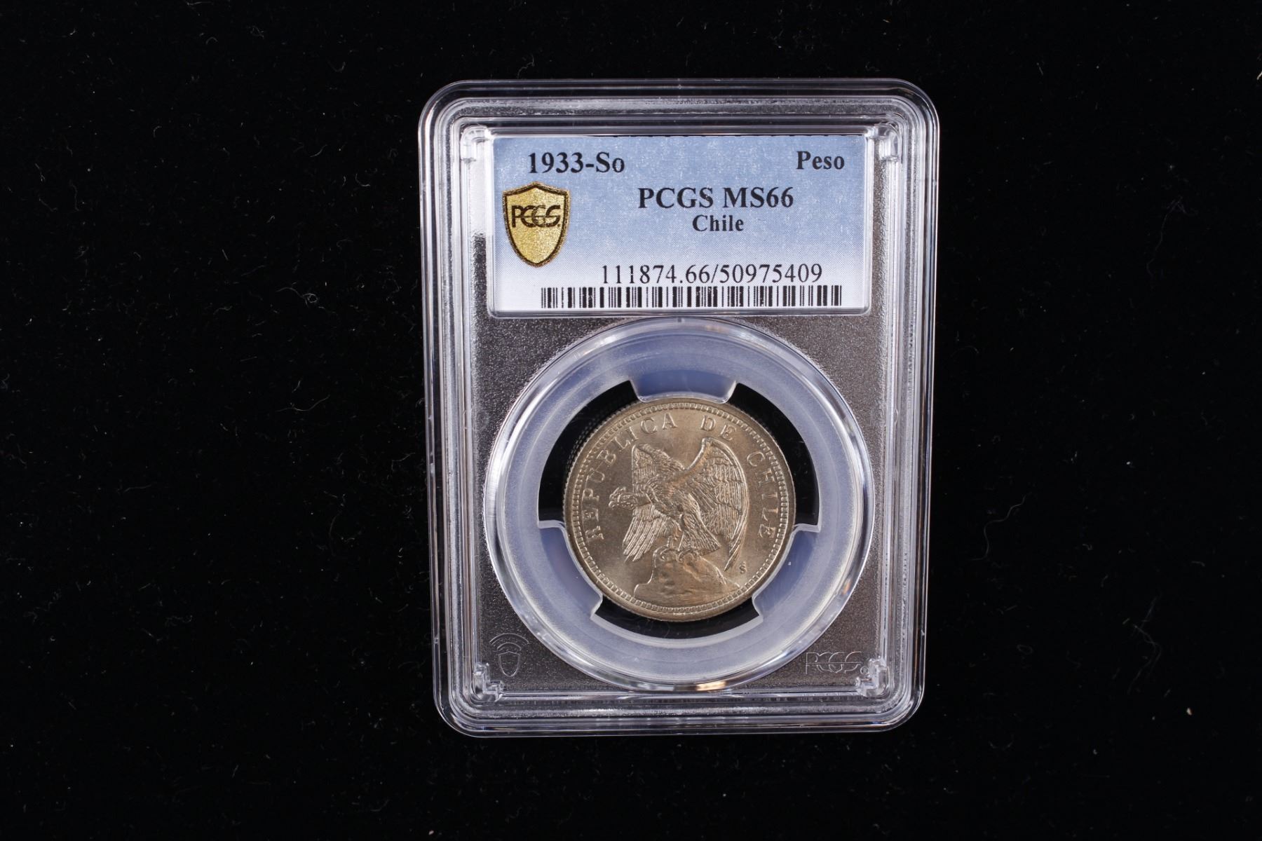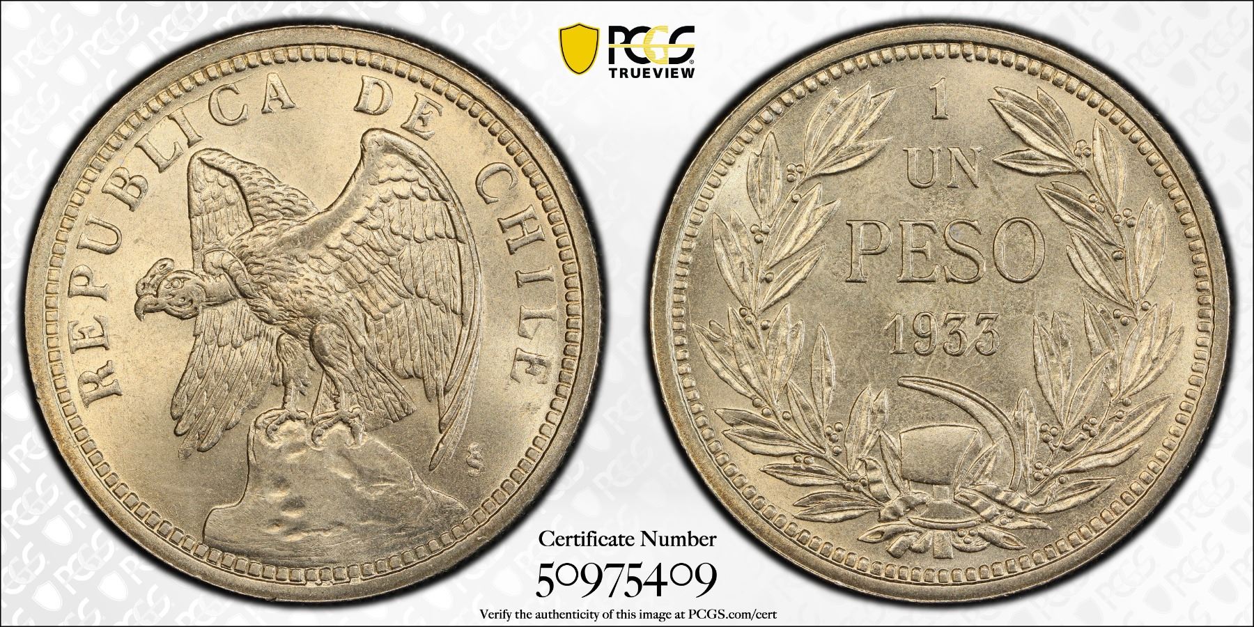 CHILE: Republic, 1 peso, 1933-So, KM-176.1, type without designer's signature, a fantastic mint state example! PCGS graded MS66.
