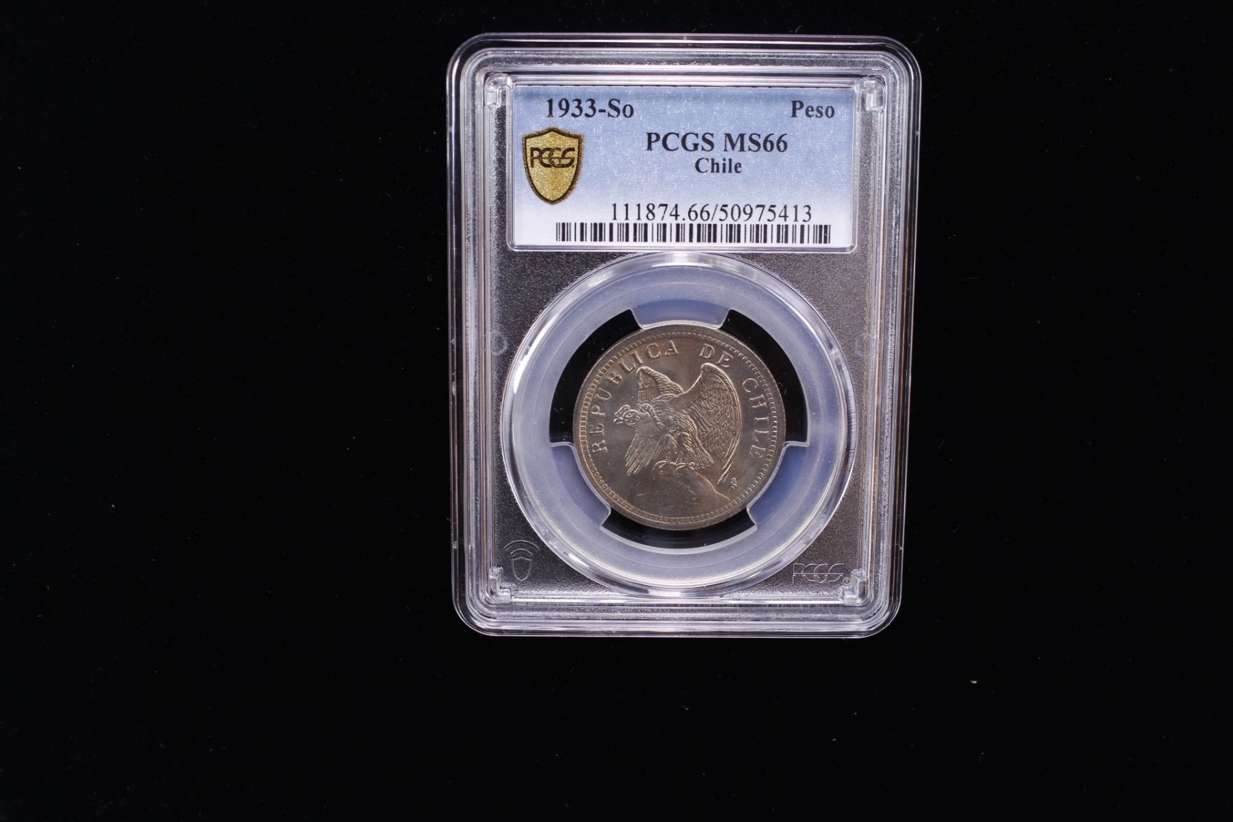 CHILE: Republic, 1 peso, 1933-So, KM-176.1, type without designer's signature, a fantastic mint state example! PCGS graded MS66.