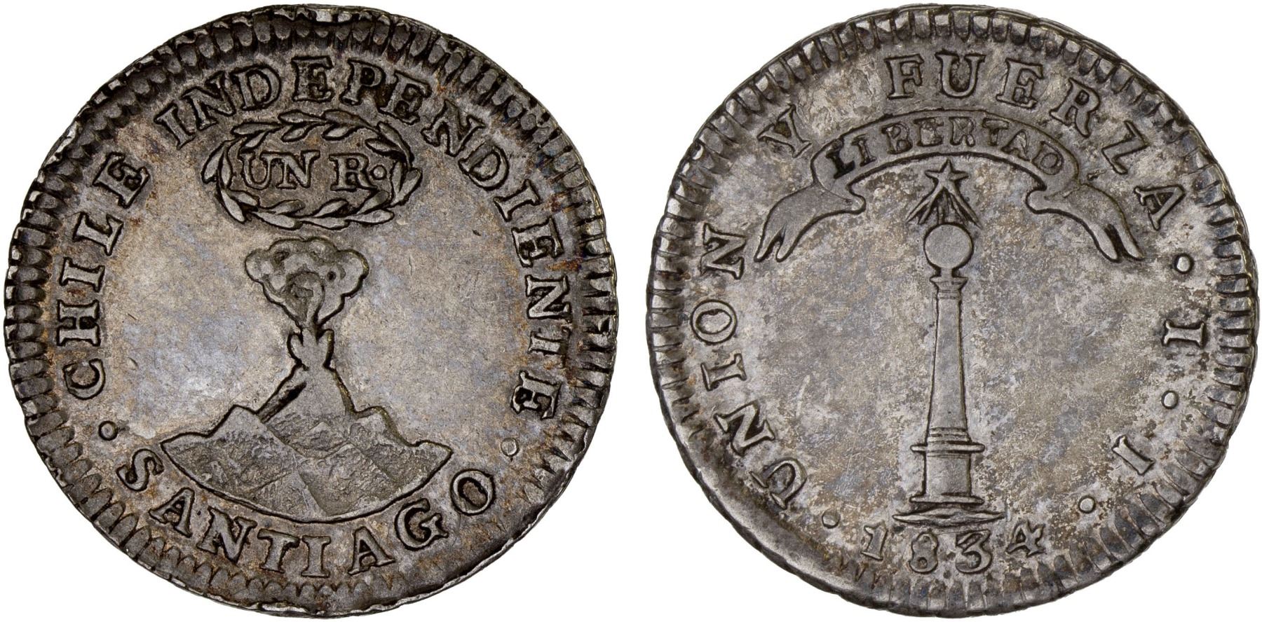 CHILE: Republic, AR real, Santiago, 1834, Choice XF
