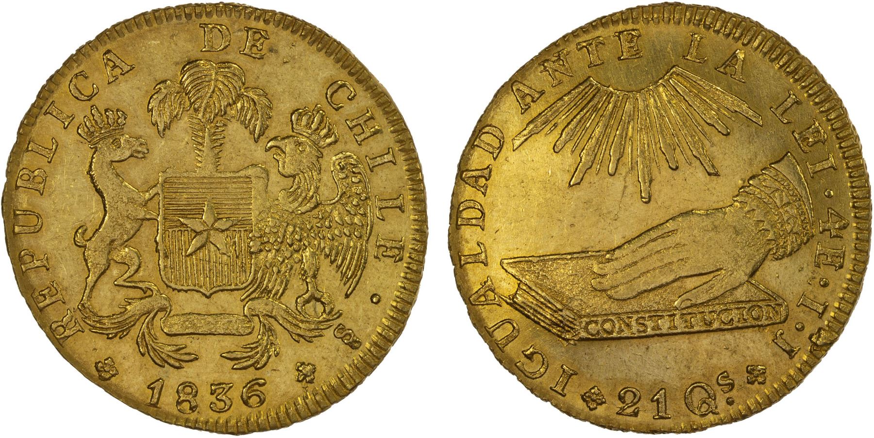 CHILE: Republic, AV 4 escudos, 1836-So, KM-95, assayer IJ, a lightly cleaned but lustrous example with bold striking of this popular two-year type! AU.