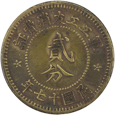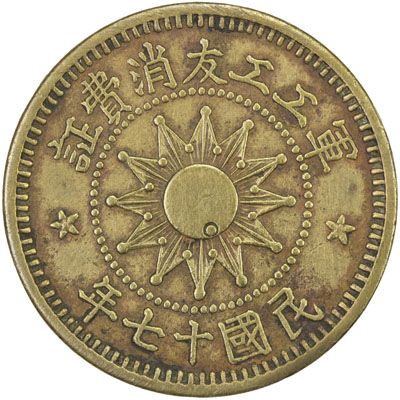 CHINA: AE cent, year 17 (1928), KM-Tn1, CCC-666, Shansi Arsenal Military Ration Coinage, usual small punch mark, EF, R.