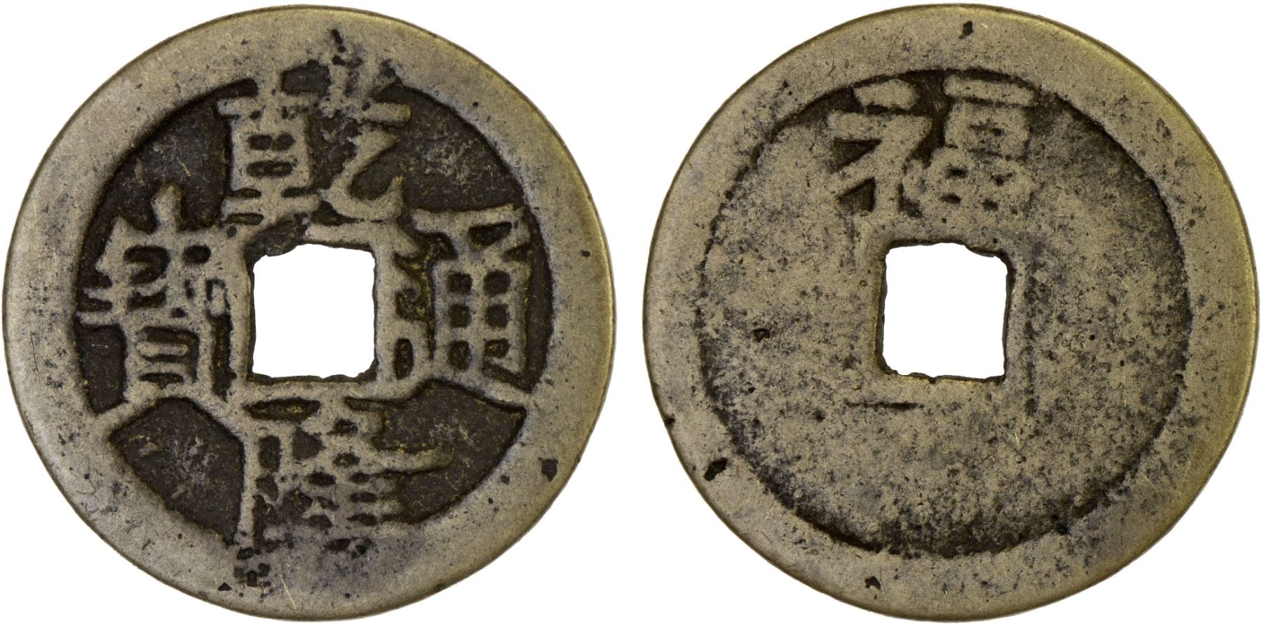 CHINA: AE charm (2.73g), obverse imitating cash of Qian Long, reverse with fu in Chinese above (rather than boo fu in Manchu), F-VF, ex Dr. Dirk Löer Collection.