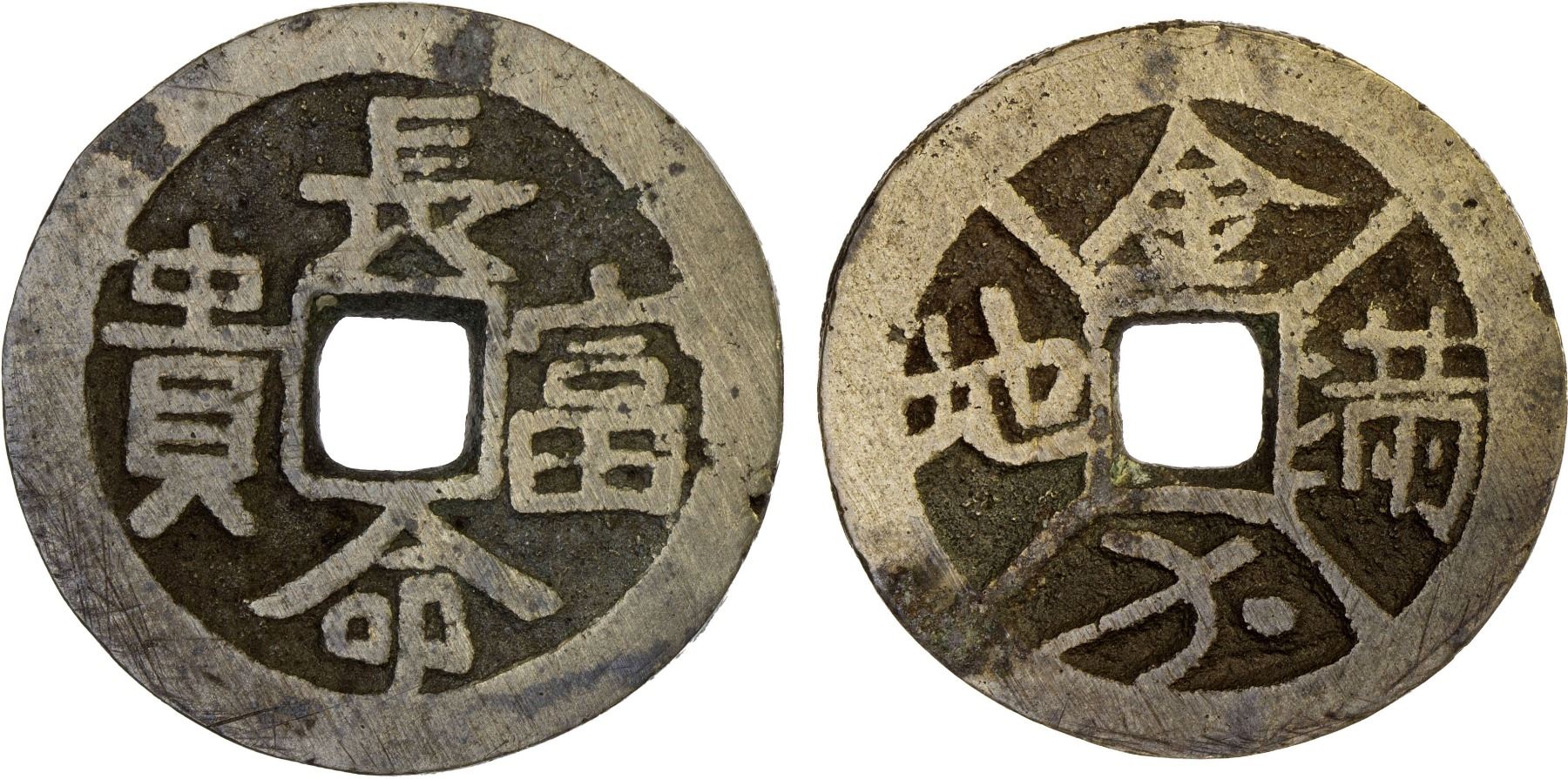 CHINA: AE charm (6.42g), 25mm, chang ming fu gui ("Longevity, wealth, prominence") // jin qian man di ("Gold piling on the floor"), Choice VF.
