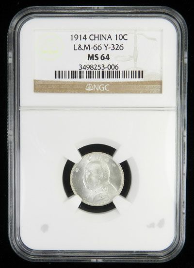 CHINA: AR 10 cents, year 3 (1914), Y-326, L&M-66, bust of General Yuan Shih Kai left, NGC graded MS64.