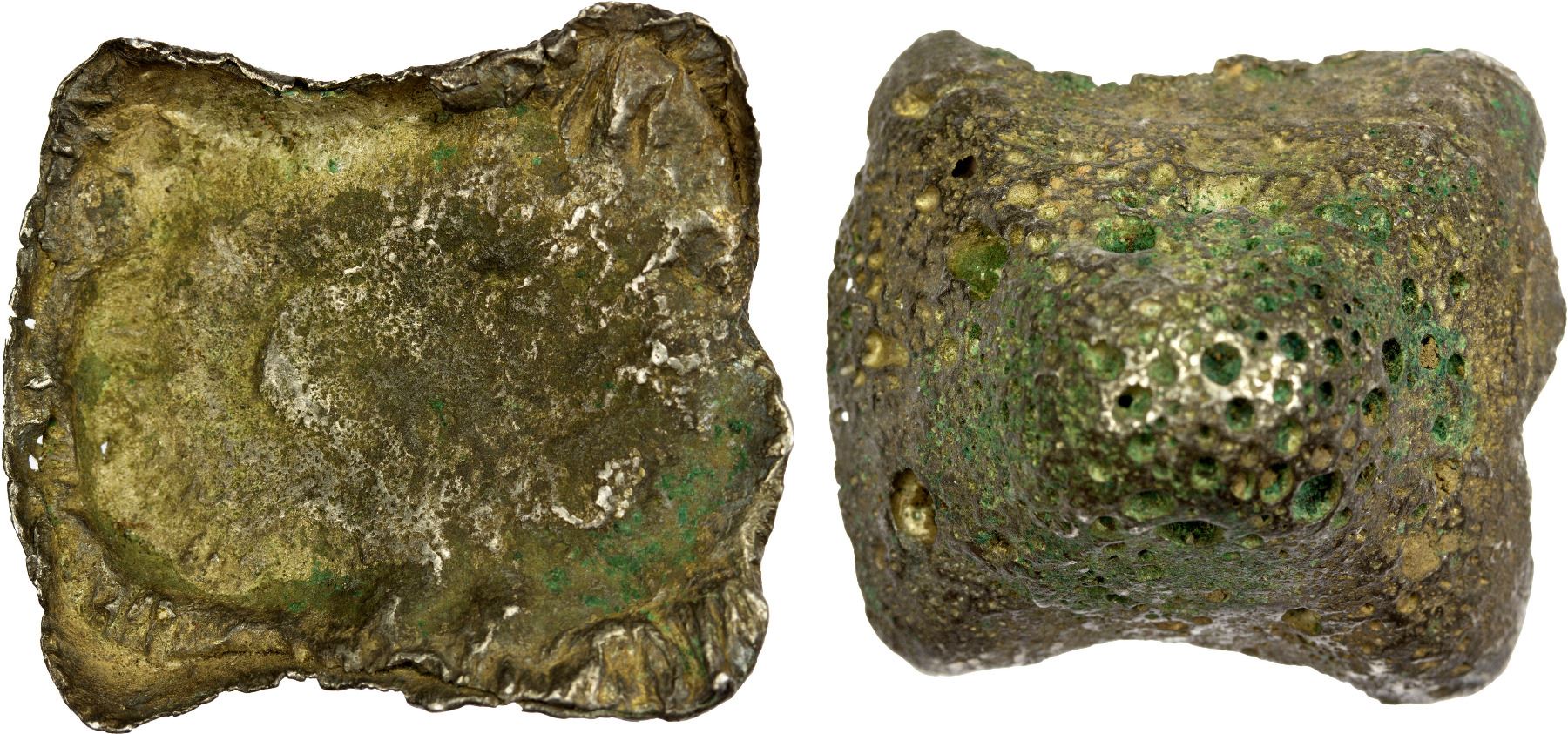 CHINA: AR sycee (34.02g), 30mm wide, pyramid-shaped ingot, found in Vietnam, possibly a variant of the Shan snail sycees made by the Shan/Dai people of Shan State (Burma), southern Yunnan, and northern Thailand, Fine, ex Howard A. Daniel III Collection.