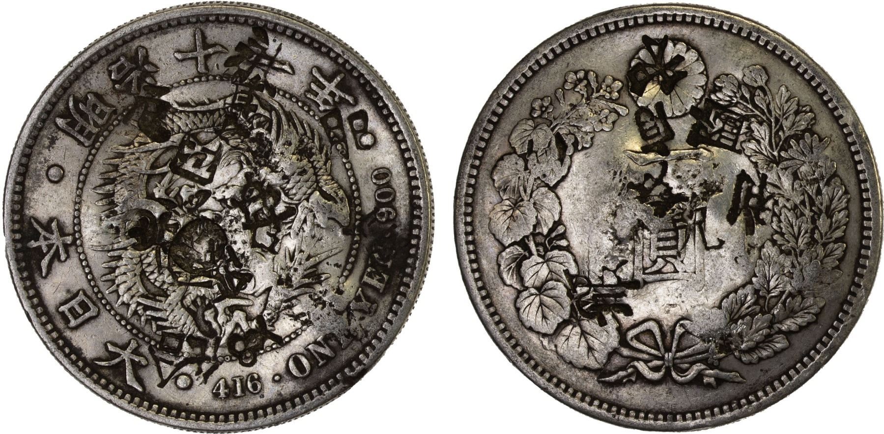 CHINA: CHOPMARKED COINS: JAPAN: Meiji, 1868-1912, AR yen, year 11 (1878), VF-XF