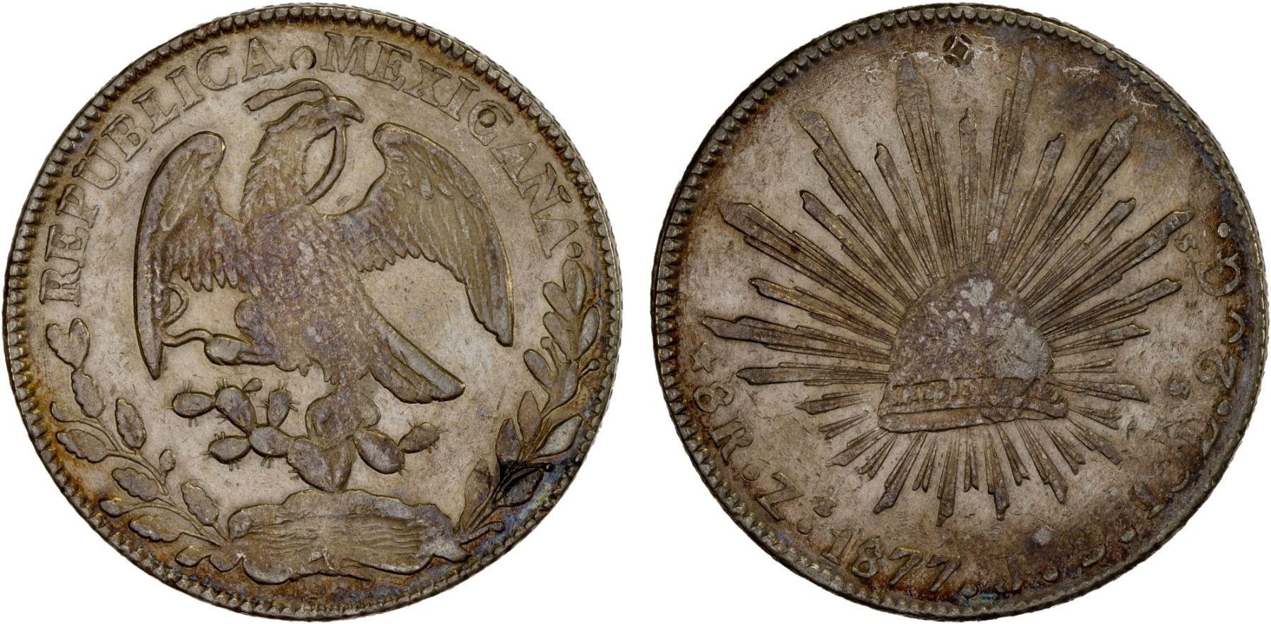 CHINA: CHOPMARKED COINS: MEXICO: Republic, AR 8 reales (26.94g), 1877-Zs, XF