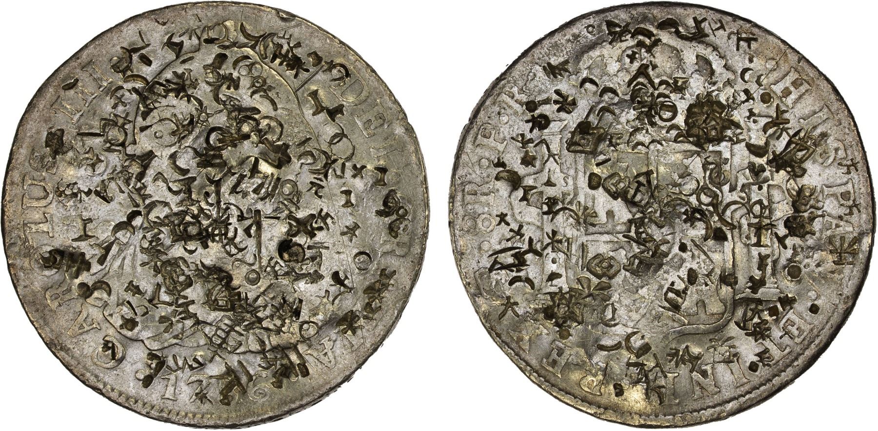 CHINA: Chopmarked Coins: Bolivia: Carlos III, 1759-1788, AR 8 reales, Potosí, 1786-PTS, KM-55, assayer PR, cleaned, many small and large Chinese merchant chopmarks on both sides, Choice VF.