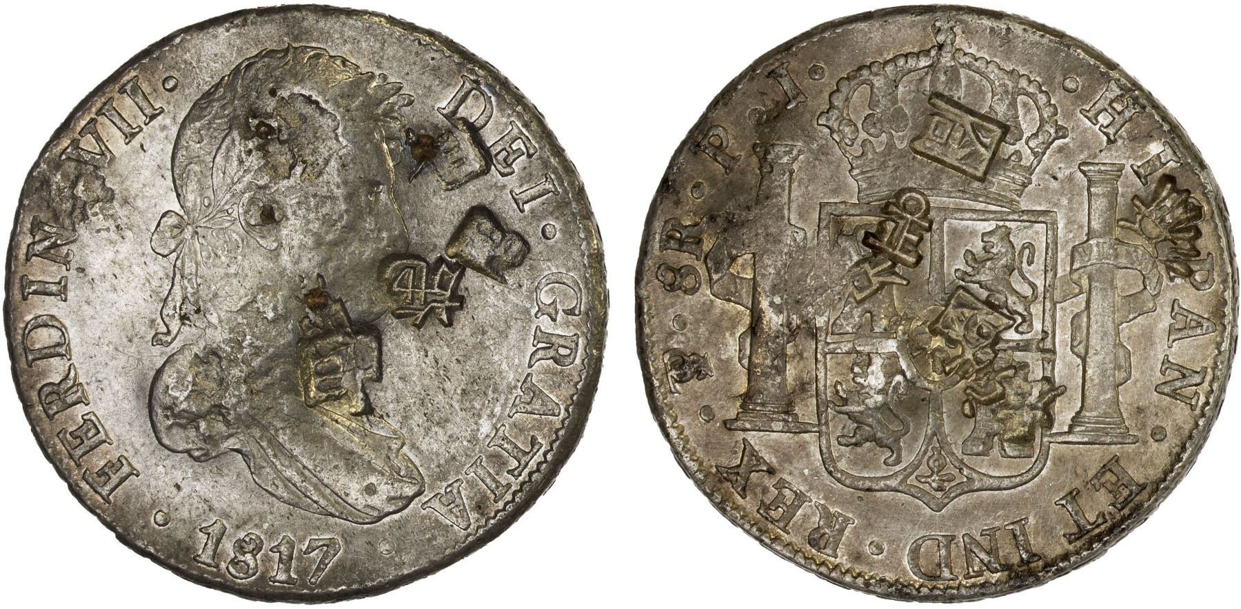 CHINA: Chopmarked Coins: Bolivia: Fernando VII, 1808-1825, AR 8 reales, Potosí, 1817-PTS, XF