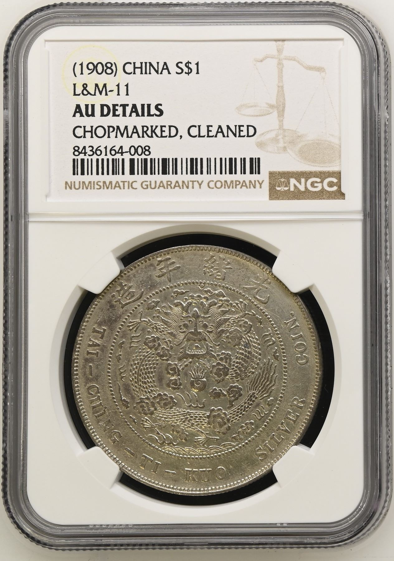 CHINA: Kuang Hsu, 1875-1908, AR dollar, Central Mint, Tientsin, ND (1908), Y-14, L&M-11, one Chinese merchant chopmark, cleaned, NGC graded AU details.