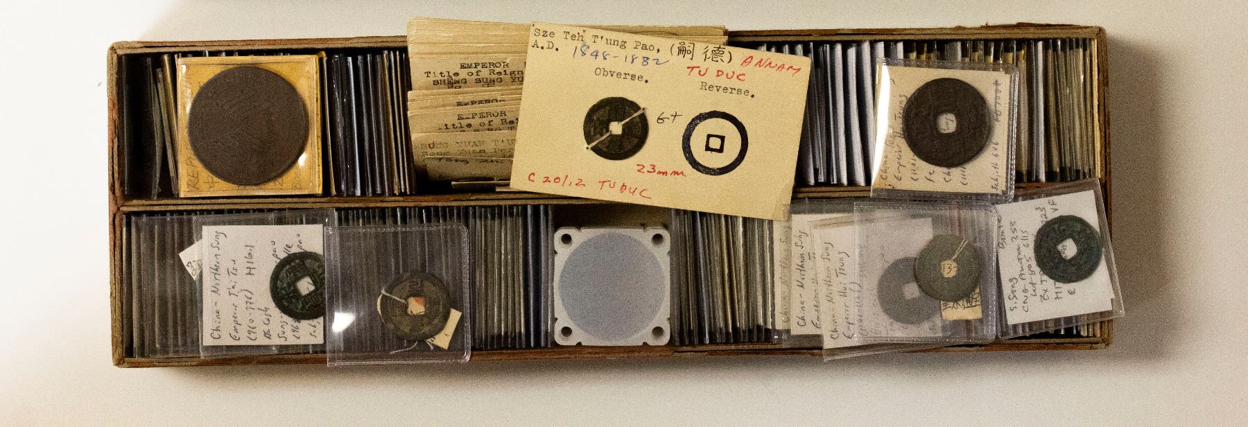 CHINA:LOT of 240 coins, a very diverse mix of types including broken spade money (1), ban liang (3), wu zhu (1), da quan wu shi (3), chang ping wu zhu (1), Tang dynasty including some mint marked types (8), Later Zhou dynasty (5), Northern Song dynasty single cash coins (105), large size copper cash (25), large iron cash (16), Southern Song large iron cash (1), Liao dynasty (1), Western Xia (8), Jin dynasty (8), Yuan dynasty (6), Ming and Southern Ming dynasties (7), Qing dynasty better cash coins (10), Xian Feng large 10 cash (1), Xinjiang 'red cash' (5), Yunnan cash Republic 10 cash (1), machine struck Chinese coins (7), Annam cash coins (12), Chinese charms (4), plus silver Sasanian silver drachm (1), mostly worked up in 2x2 holders, some from the Jim Farr, Nicholas Rhodes, Abraham Heidal, and H. D. Gibbs Collections, viewing highly recommended, average quality examples, retail value $1700, lot of 240 items, Dr. Allan Pacela Collection.