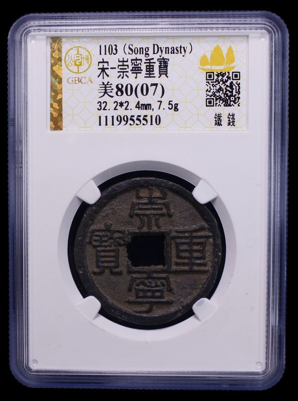 NORTHERN SONG: Chong Ning, 1102-1106, large iron cash (7.54g), H-16.416, Li script, graded 80(07) by GBCA Grading Company, natural casting defects, VF, ex Dr. Dirk Löer Collection.