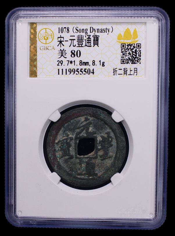 NORTHERN SONG: Yuan Feng, 1078-1085, AE 2 cash (8.1g), H-16.251, running hand script, crescent above, dot below on reverses, graded 80 by GBCA Grading Company, VF, ex Dr. Dirk Löer Collection.